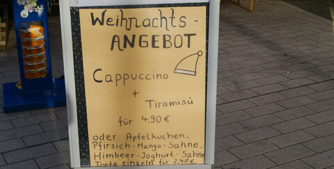 La Piazza hat ein leckeres Weihnachtsangebot für euch: Cappuccino und ein Stück Tiramisu, Apfelkuchen, Pfirsich-Mango-Sahne oder Himbeer-Joghurt-Sahne für nur 4,90€. Die Liebsten schnappen und noch einmal die Vorweihnachts-Zeit genießen.