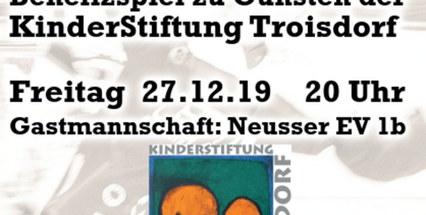 Der EHC Troisdorf Dynamite möchte mit seinem Engagement die Arbeit der KinderStiftung Troisdorf unterstützen, so dass möglichst vielen benachteiligten Kindern in Troisdorf geholfen werden kann. Die 1. Mannschaft freut sich auf die Unterstützung aller Eishockeyfans, die am 27. Dezember zum Spiel gegen die 1b Mannschaft des Neusser EV kommen. Anpfiff ist um 20 Uhr im Icedome in der Uckendorfer Straße.