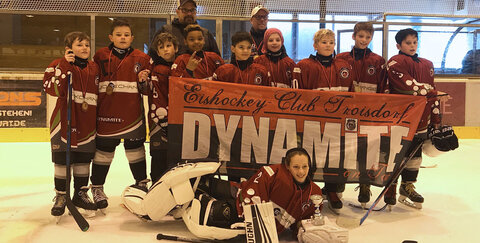 In einem absolut auf Augenhöhe geführten Halbfinale gegen die Kassel Huskies konnten die Dynamites aber leider Ihre Spielstärke nicht in Tore ummünzen. Der Goalie der Huskies machte etliche Großchancen der Dynamites zu Nichte. Am Ende verlor man etwas unglücklich mit 3:0. Die Tränen waren schnell getrocknet und mit einem unglaublichem Teamspirit schafften die Kids was hier niemand für möglich gehalten hatte. Die Dynamites konnten im kleinen Finale gegen spielstarke und robuste Tigers aus Bayreuth zur Halbzeit mit 4:1 in Führung gehen. Die Tigers konnten noch auf 4:3 verkürzen. Keine Ahnung woher die Dynamites die Körner noch herholten. In einem unfassbar intensiven, schnellen und stets fairen Spielbrachten die Troisdorfer mit unglaublichem Einsatzwillen und Teamspirit den schmelzenden Vorsprung, zur Freude des mitgereisten Anhangs und der Daheimgebliebenen am Liveticker, über die Zeit.