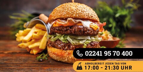 Ebenso bringen unsere Pattys 200gr. auf die Waage. Außerdem werden unsere Brioche Buns aus traditionell hergestelltem französischem Weizenmehl gebacken. Ihr werdet begeistert sein! Ab 17.00 Uhr könnt ihr Bestellen & Abholen.02241 95 70 400Kölner Str. 161, 53840 Troisdorf(A la Carte aktuell geschlossen)