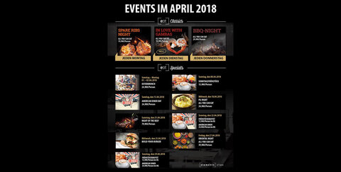 - Jeden Montag: Spare Ribs Night ALL YOU CAN EAT für 19,99 Euro.