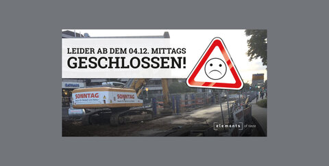 Das Elements of Taste stellt aufgrund der Baustelle ab dem 04.12.2017 das Mittagsgeschäft ein - bis zur Fertigstellung konzentriert sich das Lokal voll und ganz auf das Abendgeschäft.
