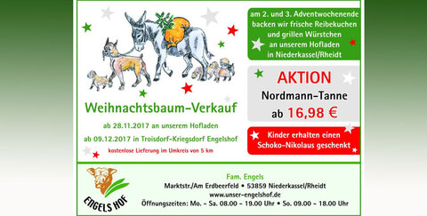 Ab dem 09.12.2017 verkauft der Engelshof in Troisdorf-Kriegsdorf Weihnachtsbäume