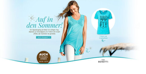 Luftige Tops und Effekt-T-Shirts und viele Accessoires verschönern euch den Sommer bei ernstings.