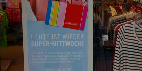Habt ihr noch keine Jahreskarte von Ernsting's Family? Dann sprecht die Mitarbeiter der Filiale an und verpasst damit nie wieder die attraktiven Aktionen für die Karteninhaber!