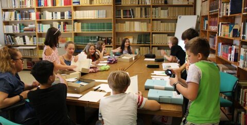 Schülerinnen und Schüler der Europaschule erforschten im Stadtarchiv im Rahmen der Bildungspartnerschaft die Geschichte ihrer Schule.
