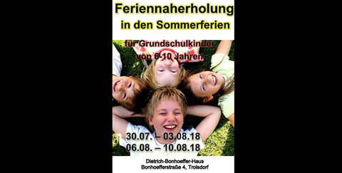 Die Evangelische Kirchengemeinde Troisdorf bietet in diesem Jahr eine Feriennaherholung für Grundschulkinder (6-10 Jahre) von 30.07.-10.08.2018 an