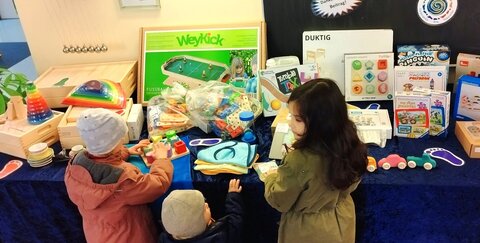 Nach dem Auspacken der vielen angelieferten Pakete wurden die Spielsachen auf einem großen Tisch im Flur des Kindergartens ausgestellt, so dass Eltern und Kinder sehen konnten, was vom Förderverein eingekauft wurde. Die Kinder konnten es kaum erwarten, das neue Spielzeug auszuprobieren.