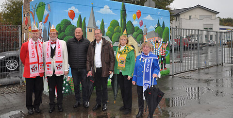 Auf einer Fläche von knapp 45 m2 hat der Troisdorfer Künstler Josef Hawle eine lebhafte Karnevalskulisse geschaffen und damit die ehemals unscheinbare Trafostation im Senkelsgraben in einen wahren Hingucker verwandelt.