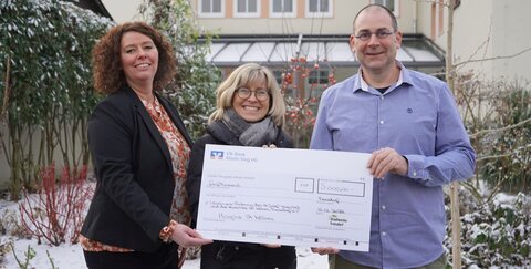 Weihnachts-Überraschung von den Stadtwerken Trois-dorf: Stadtwerke-Geschäftsführerin Andrea Vogt (mitte) überreicht einen Spendenscheck über 5.000 Euro an Hospizleiter Martin Keßler (rechts) und Jessica Holdefehr (links).