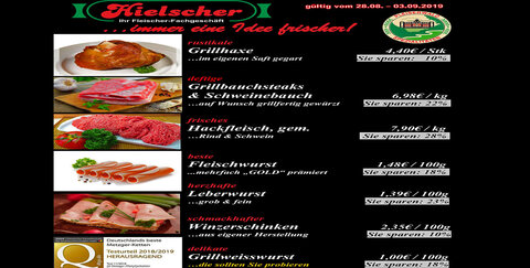 Entdeckt auch diese Woche schmackhafte Angebote bei der Fleischerei Hielscher. Von Grillhaxe, über Grillbauchsteaks, bis zu Leberwurst, ist für jeden Fleischliebhaber was dabei!