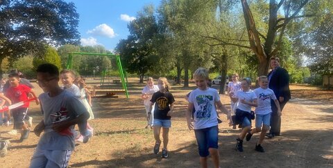 Über die Neugestaltung des „in die Jahre gekommenen“ Spielplatzes Schellerod freuten sich jüngst Kinder der Oberlarer Janosch-Grundschule, die von Bürgermeister Alexander Biber zu einer Vorab-Besichtigung eingeladen worden waren. Die „Grünbär-Klasse“ der Gemeinschaftsgrundschule hatte im Mai 2021 an einem Partizipationsprojekt zur Neugestaltung des Spielplatzes Auf dem Schellerod in Oberlar mitgewirkt.