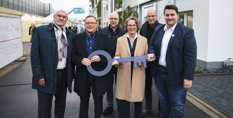 Zur Einweihung des aus einer Landesinitiative entstandenen Projekts heißt Bürgermeister Alexander Biber Ina Scharrenbach, Ministerin für Heimat, Kommunales, Bau und Digitalisierung des Landes NRW ebenso willkommen wie Architekt Joachim Kneutgen, die Geschäftsführer der beteiligten Gesellschaften, die künftigen Bewohnerinnen und Bewohnern sowie zahlreiche weitere Projektbegleiterinnen und -begleiter.