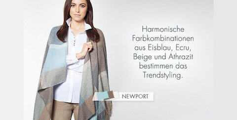 Harmonische Farbkombinationen aus eisblau, ecru und beige - abgestimmt mit grau ergeben diese Töne das aktuelle Trendstyling bei Gerry Weber.