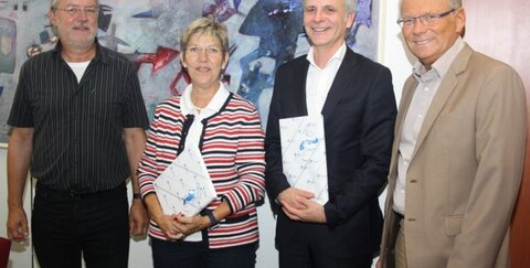 Im Beisein des Leiters des städtischen Schulverwaltungs- und Sportamts, Karl-Heinz Theus, verabschiedete der zuständige Schuldezernent der Stadt Troisdorf, Erster Beigeordneter Heinz Eschbach, die beiden erfahrenen und erfolgreichen Schulleiter. Er dankte ihnen für die jahrelange Arbeit in den und für die beiden Schulen und für die vertrauensvolle Zusammenarbeit mit der Stadt als Schulträger. Die installierte 2012 die neue Gesamtschule. „Die Eltern wünschten sich eine weitere Gesamtschule, sie passte sehr gut in die Bildungs- und Schullandschaft unserer Stadt und sie hatte einen guten Start“, resümierte Eschbach.