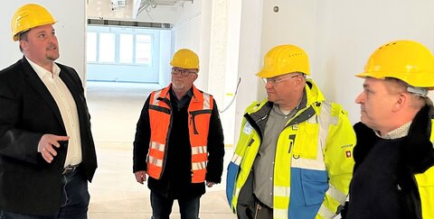 „Zu sehen, was die Frauen und Männer der verschiedenen Gewerke hier auf der Baustelle leisten, motiviert und weckt große Vorfreude“, findet der Bürgermeister. „Allen, die mit Können und Fleiß am Werk sind, gilt unser großer Dank“, sagt er auch im Namen der Mitarbeiter*innen im Rathaus, die mit der Planung und der Organisation befasst sind. Und natürlich im Namen der Schüler- und Lehrerschaft, die sich auf ein topmodernes Schulzentrum freuen können.