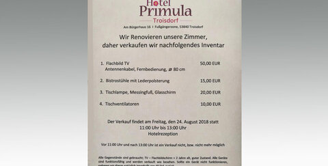 22.08.2018: Inventar-Verkauf im Hotel Primula