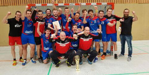 Am 6.5. in Erftstadt fand das Pokalfinale zwischen der ersten Herren - die Titelverteidiger in diesem Finale - und dem Poppelsdorfer HV statt. Es war spannend: Schnell ging der Titelverteidiger mit 2:0 und 5:3 in Führung. Ein paar kleine Unkonzentriertheiten sorgten für den 5:5 Ausgleich durch den Herausforderer. Beim 10:5 schien die Partie gewonnen. Poppelsdorf holte jedoch auf und konnte auf 12:11 verkürzen. Zur Halbzeit blieb es bei der Ein-Tore-Führung für den HSV. In Hälfte zwei stand die Abwehr wieder und wurde besonders durch Kai Czyrny zu einem unüberwindbaren Hindernis für den PHV. Auch Frank Dieball lief zur Höchstform auf. Er erzielte 75% aller Treffer. Beim 25:24 ließ der Titelverteidiger vier Chancen liegen und konnte sich bei Christian Pilger bedanken, dass die Poppelsdorfer nicht ausgleichen konnten. Im fünften Angriff erzielte Benjamin Weckwert das 26:24. Das Spiel war entschieden.