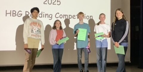 Alle Teilnehmer:innen erhielten unter großem Applaus vom Publikum eine Urkunde. Die drei Finalist:innen gewannen Gutscheine für eine Buchhandlung, welche vom Förderverein gespendet wurden, sowie die Stofftaschen mit HBG-Logo von der SV.
