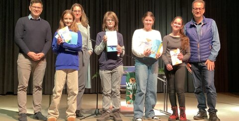 Alle Vorleser*innen hatten an diesem 6. Dezember sicher ein besonderes Erlebnis auf der Aulabühne, sie haben eine Urkunde als Klassensieger*innen mit nach Hause genommen und einen Schokoladen-Nikolaus. Die besten Drei konnten sich zudem über ein neues Buch freuen, und die Schulsiegerin über ihren tollen Erfolg! Dass es Weihnachtsleckereien für alle, Nikoläuse für die Klassensieger*innen und Buchpreise gab, verdanken wir unserem Förderverein, der den Vorlesewettbewerb jedes Jahr unterstützt. Vielen Dank!