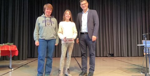 Alle Vorleser*innen hatten an diesem Dezembertag sicher ein besonderes Erlebnis auf der Aulabühne, sie haben eine Urkunde als Klassensieger*innen mit nach Hause genommen und einen Schokoladen-Nikolaus. Die besten Drei konnten sich zudem über ein neues Buch freuen und die Schulsiegerin über ihren tollen ersten Platz!