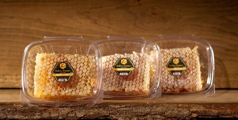 Damit genießen Sie Honig in seiner natürlichsten Form. Die Waben bestehen zu hundert Prozent aus reinem Bienenwachs und können als natürliches Kaugummi genutzt werden oder sogar mitgegessen werden.