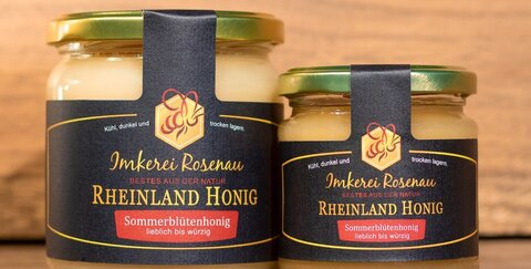 Der aromatische Sommerblütenhonig hat eine kräfig gelbbraune Farbe und eine cremige Konsistenz.Der Geschmack kann je nach Jahr zwischen lieblich bis würzig variieren.Diesen Honig wird im Laufe des Juli geerntet und er entsteht aus Nektar der Linde, Akazie (Robinie), Brombeeren, etc.
