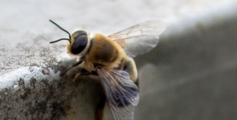 das männliche Bienen die sogenannten Drohnen, wie auf dem Bild unten zu sehen ist, an dem größeren Hinterleib und den größeren Augen von den übrigen weiblichen Arbeiterinnen unterschieden werden können?