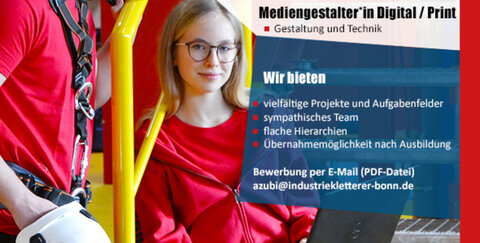 Zum nächstmöglichen Ausbildungsbeginn sucht Industriekletterer Bonn für ihren Standort in Troisdorf nahe Bonn zur Ausbildung Mediengestalter*in Digital / Print (Gestaltung und Technik)