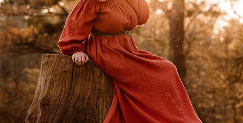 Wie toll die Farbe des Kleides zu der Kulisse passt!