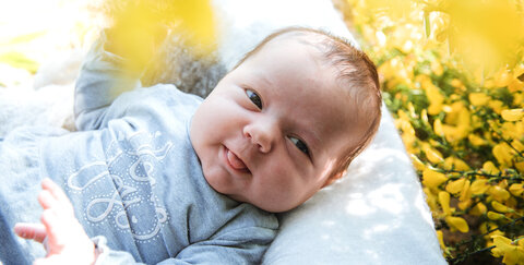 Bei dem großartigen Wetter darf ein Baby Fotoshooting auch mal unter freiem Himmel stattfinden.