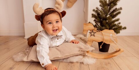 Dieser junge Mann hat sein erstes Weihnachtsfotoshooting gerockt.