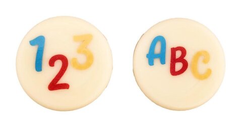 Mit diesen Schokoladendekoren lassen sich Kuchen, Torten und andere Gebäcke schnell und einfach dekorieren. Die Aufleger sind aus weißer, zart schmelzender Schokolade gefertigt und mit Lebensmittelfarbe bedruckt.