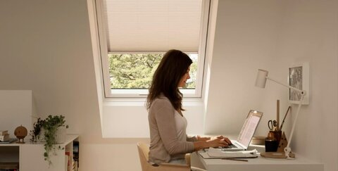 Ungestört im Homeoffice arbeiten? Kein Problem! Mit dem VELUX Plissee kannst du die Lichtverhältnisse an deine Bedürfnisse anpassen.