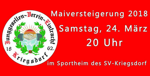 Am 24.03.2018 findet wieder die Maiversteigerung des JGV Kriegsdorf im Sportheim des SV-Kriegsdorf statt