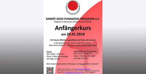 Weitere Informationen unter www.karate-funakoshi.de. Bei Interesse melden Sie sich bitte per E-Mail, WhatsApp, Facebook oder telefonisch: Kontakt@Karate-funakoshi.de oder 0151-26064007.