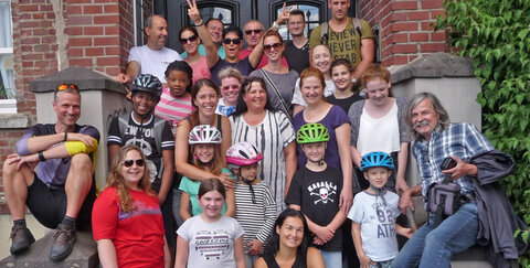 Am frühen Vormittag platzieren sich die Gäste. Gut vierzig Fahrradakteure, viele Kinder sind dabei, erreichen fröhlich, von Troisdorf kommend, das ersehnte Ziel. Es ist eine illustre, stimmungsvolle Gemeinschaft, die den weiteren Tag über für anhaltende geistige und körperliche Bewegung sorgt.