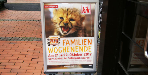Ab einem Einkauf ab 20€ bei KIK erhaltet ihr einen Coupon, mit dem ihr bis zu 50% Eintritt im Safaripark Stukenbrock spart. Dieser Coupon ist nur am 21. und 22.10.2017 gültig und gilt für maximal 4 Personen. Damit ist Familienspaß garantiert!