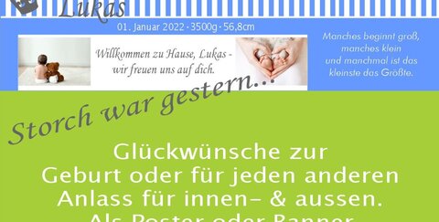 Glückwünsche zur Geburt oder für jeden anderen Anlass für innen & außen.