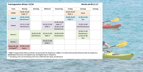 Winter - Trainingszeiten des Kanupolo Teams ab dem 06.11.2017