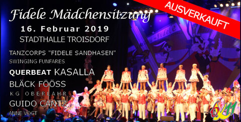 Auch im fünften Jahr ist die weit über die Grenzen Troisdorfs hinaus bekannte „Fidele Mädchensitzung“ wieder restlos ausverkauft. Am 16. Februar werden über 960 jecke Mädels mit den „Fidelen Sandhasen“ die Stadthalle zum Feiern bringen.