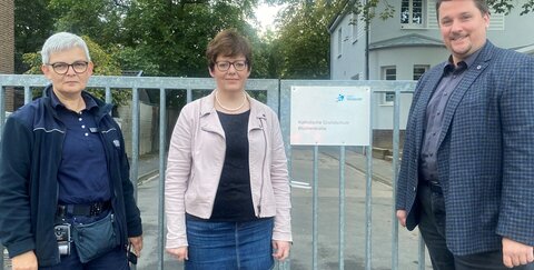 Für die Nutzung der Elternhaltestelle an der Katholischen Grundschule Blücherstraße hat heute früh Bürgermeister Alexander Biber gemeinsam mit Schulleiterin Anne Kreutz, Polizei und Ordnungsamt geworben