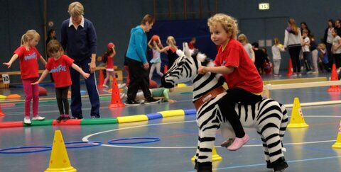 Viel Bewegung für Kita-Kinder bei MiniFit: Auf dem Zebra durch den Parcours