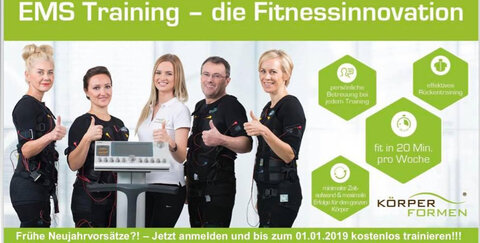 Ab sofort könnt ihr eure Neujahrsvorsätze schon im alten Jahr beginnen. Wie das geht? Ganz einfach: Wenn ihr euch jetzt bei Körperformen anmeldet, trainiert ihr den Rest des Jahres bis zum 01.01.2019 kostenlos.