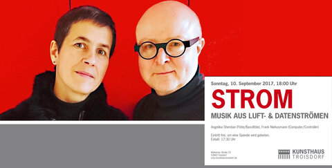 Das Duo STROM erinnert mit der Besetzung an den frühen Sound der Band „Kraftwerk“, spielt aber 46 Jahre später mit seinen rasanten Luft- und Datenströmen in offenen Improvisationen ganz zeitgenössisch voller Witz und Tricks neue elektroakustische Musik. Winzige Zeitverschiebungen im musikalischen Klangraum erzeugen faszinierende Minimal-Beats und schwebende Mikro-Modulationen.