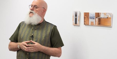Zur Finissage führt Alexander Jokisch durch die Ausstellung im Kunsthaus Troisdorf und macht auch Musik.