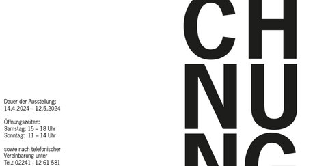 Die Ausstellung ist bis zum 12.Mai 2024 jeweils samstags von 15 bis 18 Uhr und sonntags von 11 bis 14 Uhr sowie nach telefonischer Vereinbarung unter Tel. 02241/1261581 zu sehen.