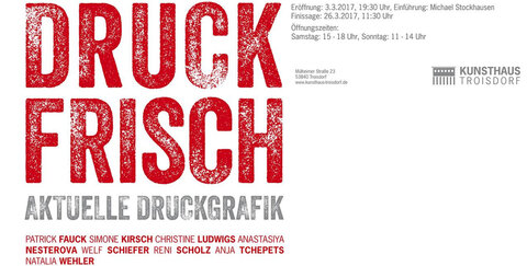 „DRUCKFRISCH“ ist der Titel der neuen Ausstellung im Kunsthaus Troisdorf.