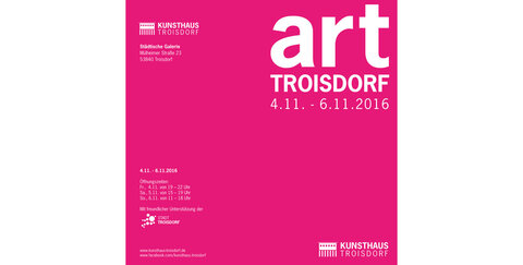 Zur Eröffnung der Kunstmesse am 4.11.2016, um 19 Uhr in der Städtischen Galerie im Kunsthaus Troisdorf, Mülheimer Str. 23, 53840 Troisdorf wird herzlich eingeladen.