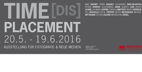 Unter dem Titel „time[DIS]placement“ präsentiert das Kunsthaus Troisdorf vom 20. Mai bis 19. Juni 2016 eine Ausstellung mit KünstlerInnen der Genres Fotografie und Neue Medien. Die Schau findet im Rahmen einer Veranstaltungsreihe des KULTURWERKES BBK Bonn Rein-Sieg e.V. statt. Insgesamt sind 16 lokale, nationale und internationale Künstlerinnen und Künstler aus Deutschland, USA, Polen, Ungarn und Österreich beteiligt. Präsentiert werden künstlerische Statements aus Fotografie, Fotoinstallation, Fotocollage und Videoarbeiten rund um das Thema „time[DIS]placement“.